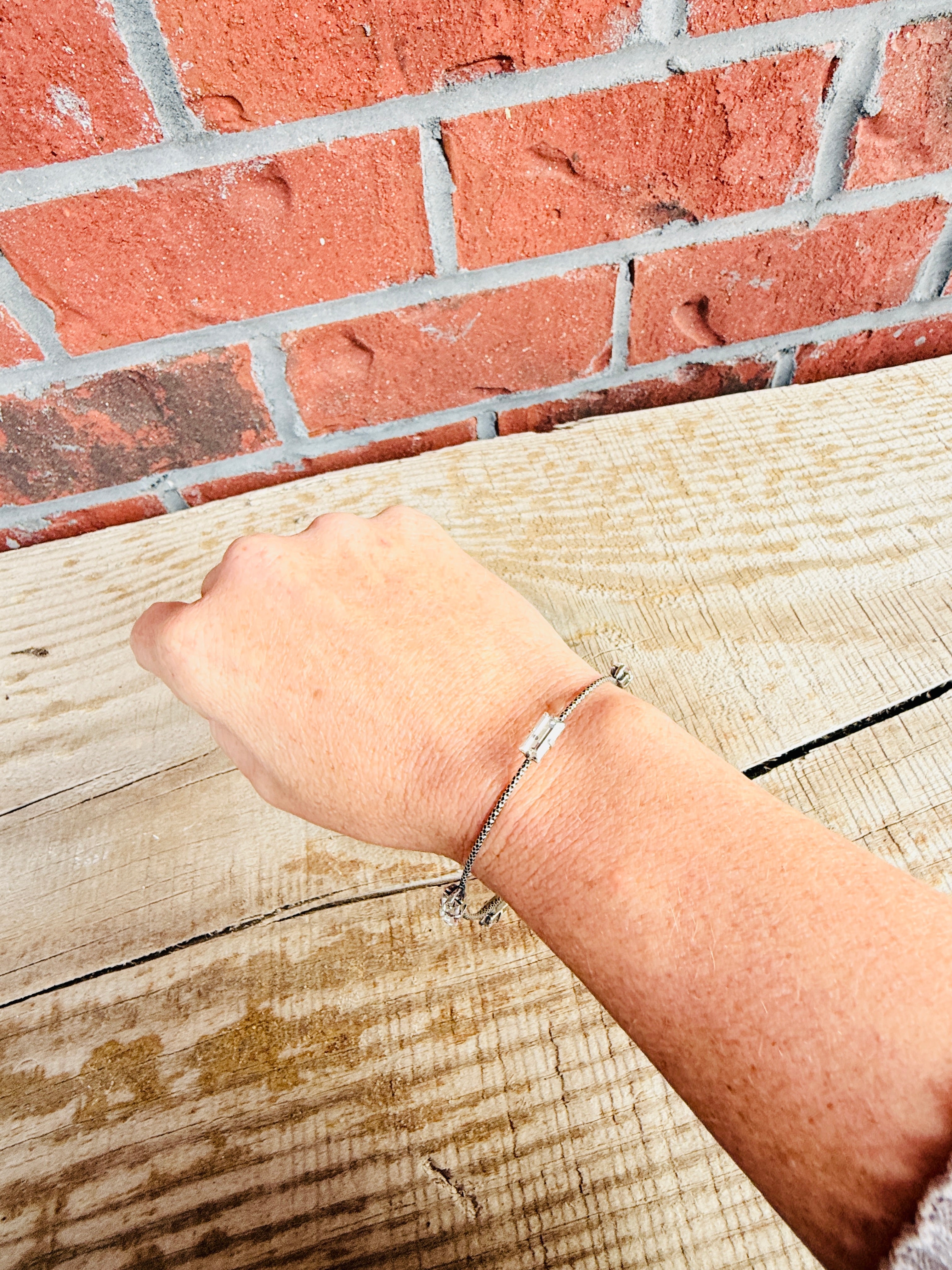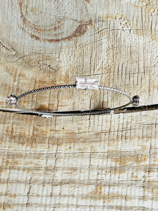 Experience the ultimate soulmate for your beloved bracelet stack - Alexandria Petite Silver Bangle Bracelet. Adorned with delicate crystal baguettes, its silver finish will radiate a stunning sparkle from every angle.