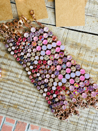Elevate your wrist with the Ashtyn Crystal Tennis Bracelet, boasting a luxurious matte rose gold finish. This exquisite piece features premium Australian crystals in an enchanting fusion of blush and lilac tones that radiate feminine charm and dazzling brilliance. Designed with convenience in mind, the secure lobster claw clasp and extender chain offer a customizable fit ranging from 7"-7.5", while the elegant crystal end charm delivers that perfect finishing touch of sophistication you won't want to be without.