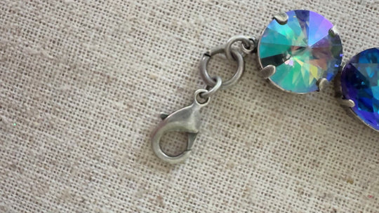 The Zara bracelet is so fun and full of sparkle ✨ The mix of bright aqua, lime, fuchsia, purple, and iridescent stones gives it a playful yet glamorous vibe. The deep romantic hues feature a perfect...Regular price $60.00 -