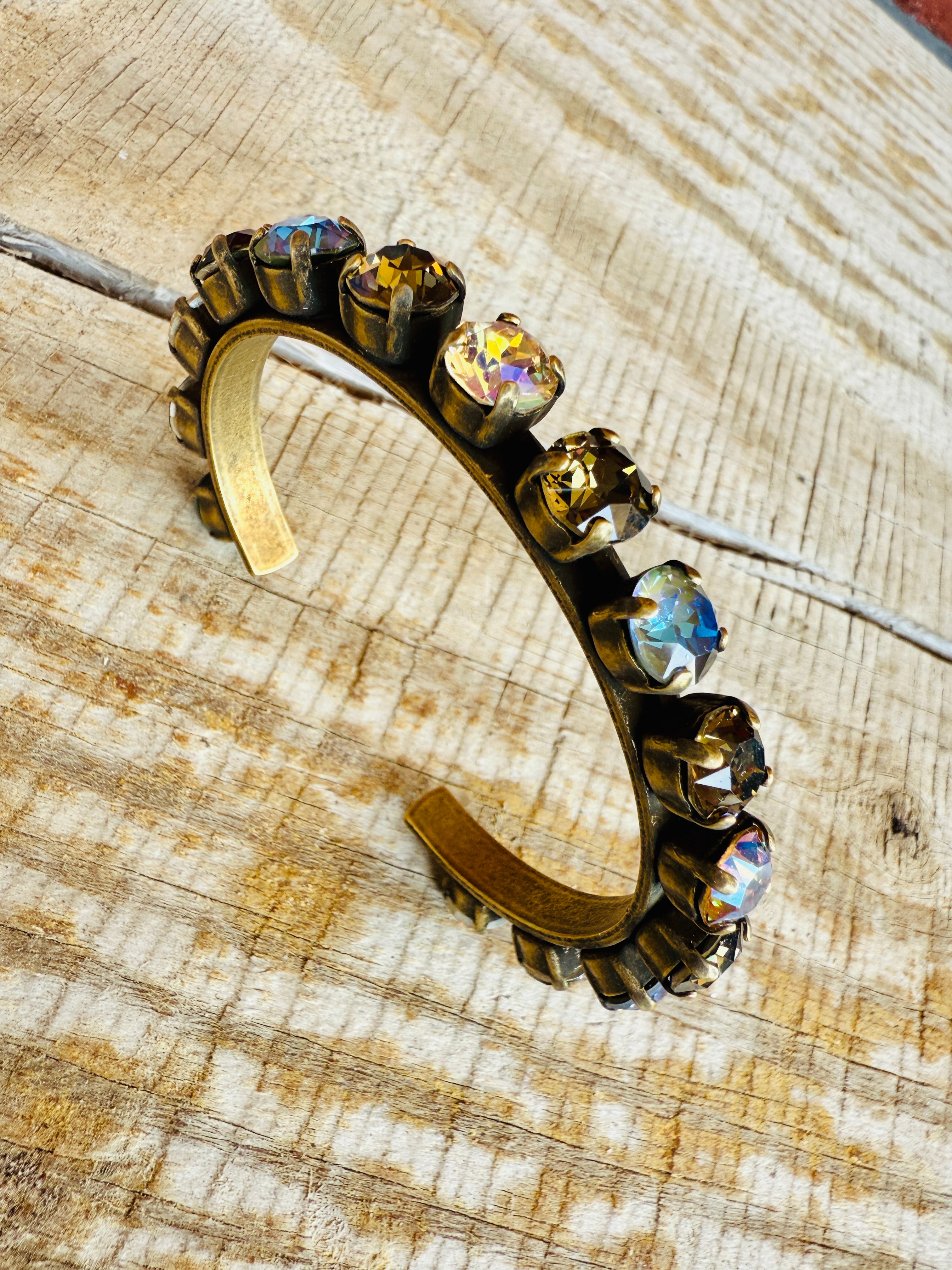 Natasha Brown Crystal Cuff Antique Gold Bracelet