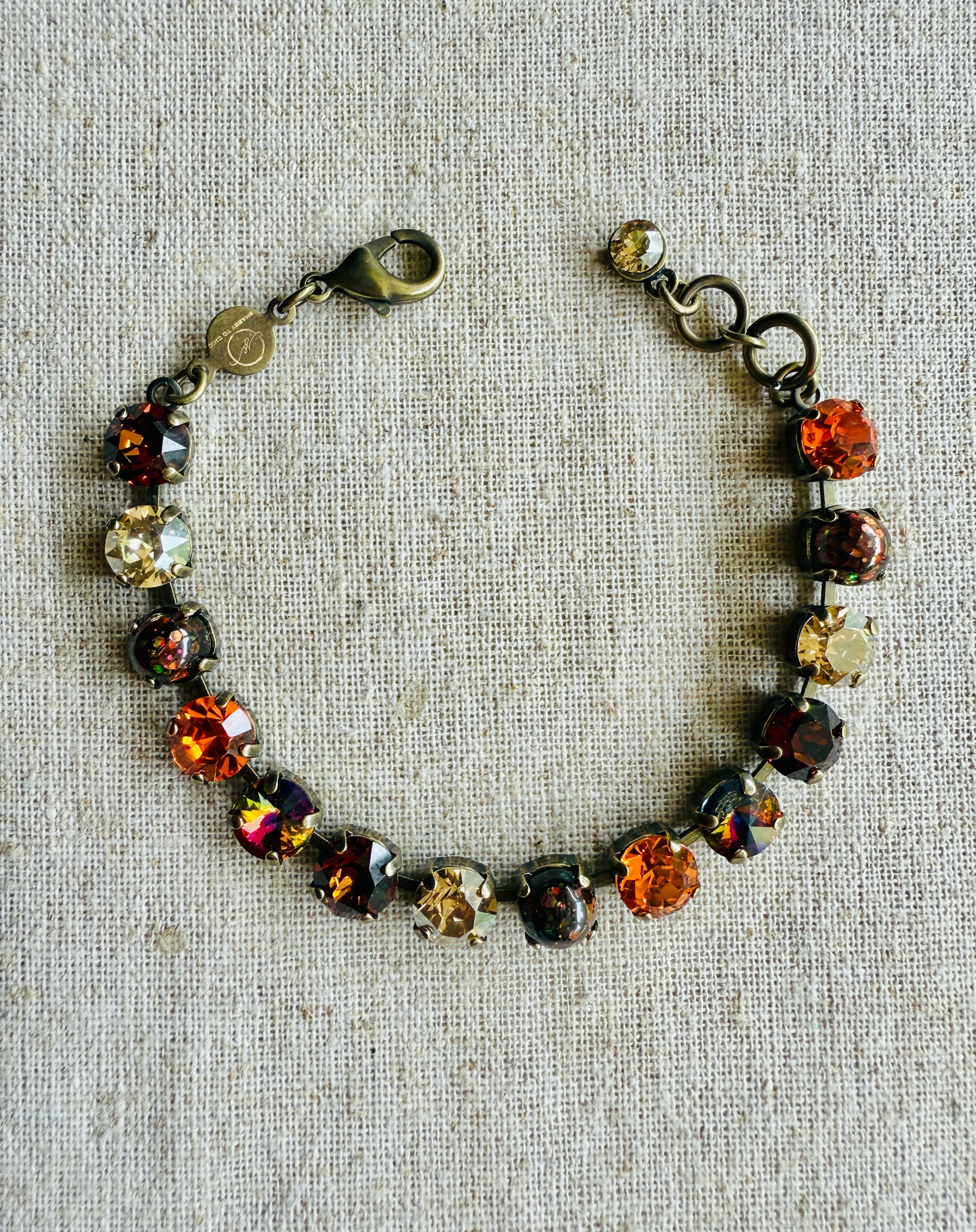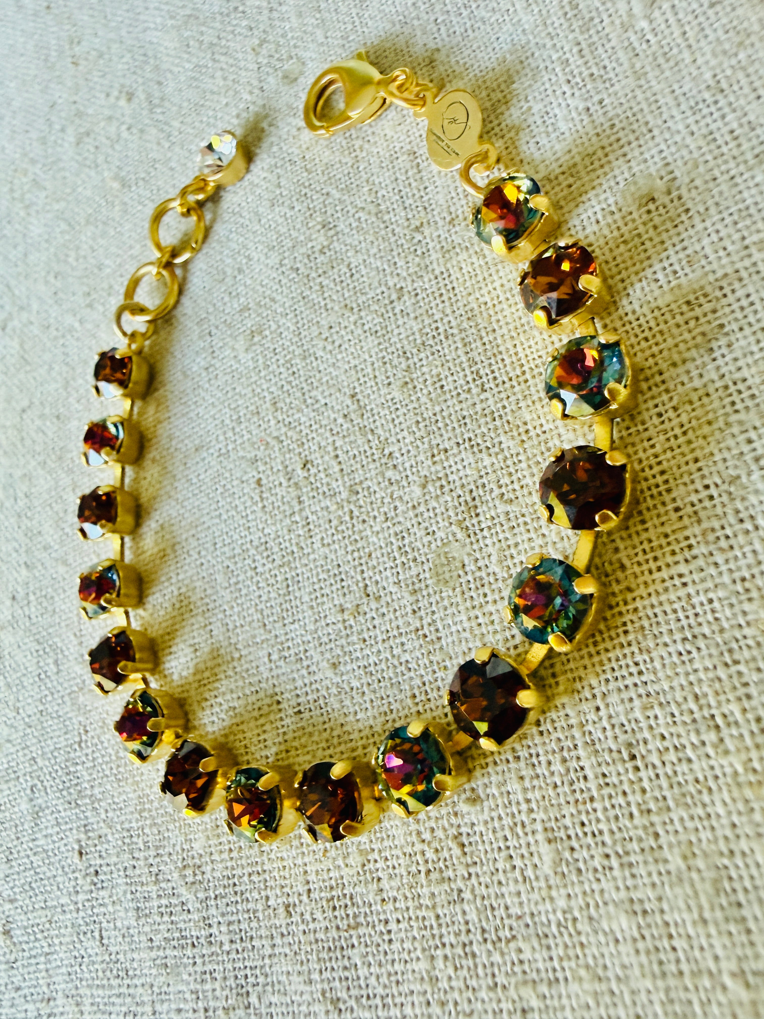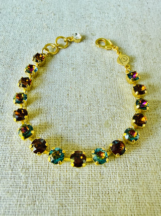 Captivate your audience with the Ember crystal tennis bracelet set, featuring a stunning blend of warm browns, amber, gold, and deep burnt orange tones. This elegant set brings a fiery touch of sophistication to any outfit. Finally, jewelry to match your energy!