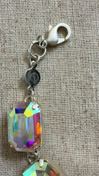 Radiant prisms cascading every color in the rainbow. Octagon cut crystals, set in a matte silver setting. Adjustable sizing from 7"-8". Complete with extender chain for custom sizing, logo disc, lobster clasps, and end charm. Lead and nickel free.