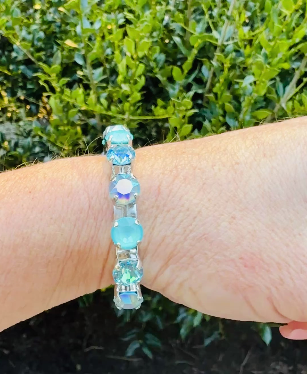 Designed for everyday wear, Raven's crystal cuff braclet in silver adds a touch of understated elegance to any outfit. Made with a gorgeous family of blue hues and slightly adjustable sizing, it's both stylish and functional.