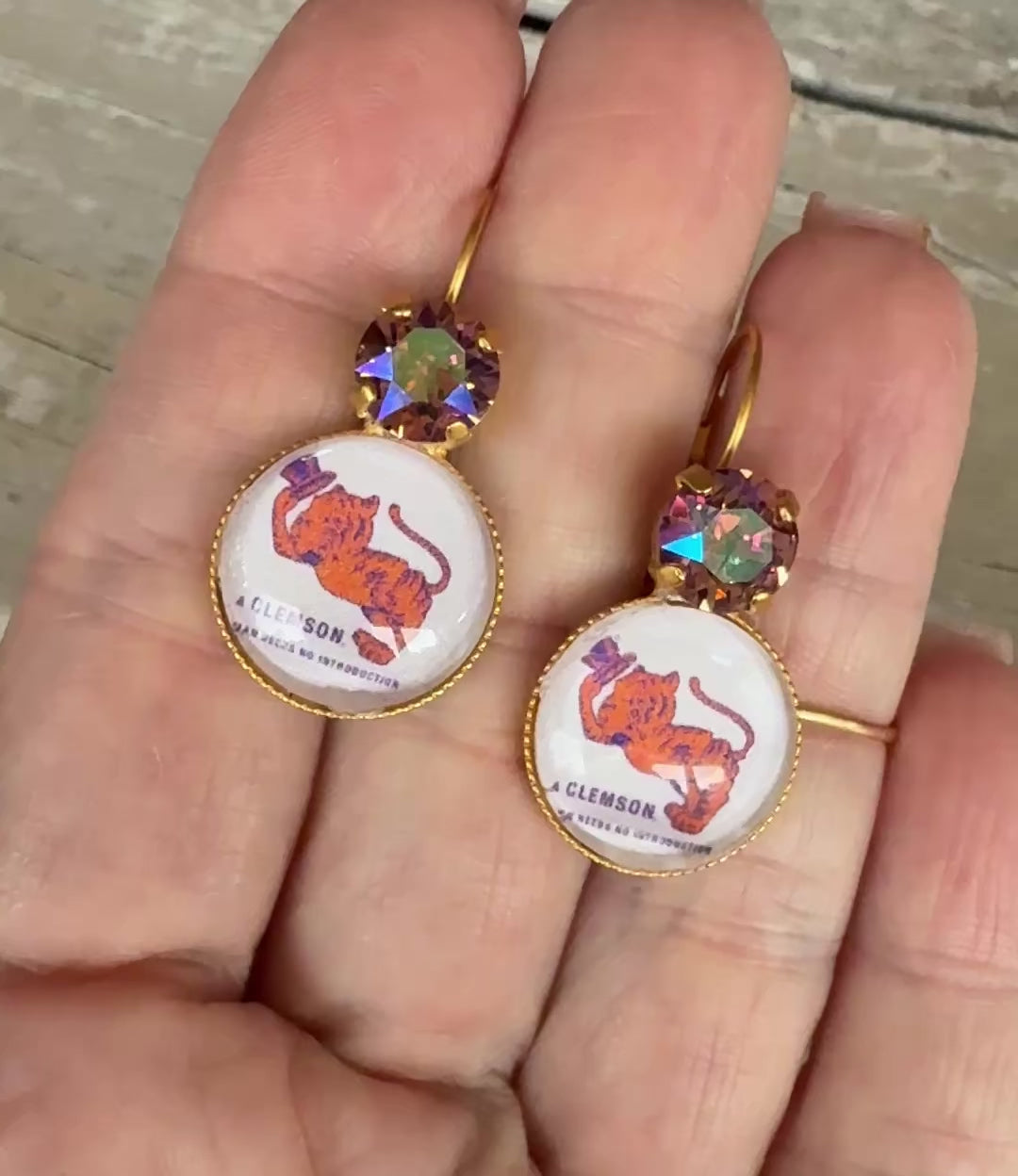 These Clemson Tiger Earrings are designed with hometown pride and team spirit in mind. The crystal accents and lever back closure give them a stylish yet secure look. Plus, they are made with lead and nickel free materials for added comfort.