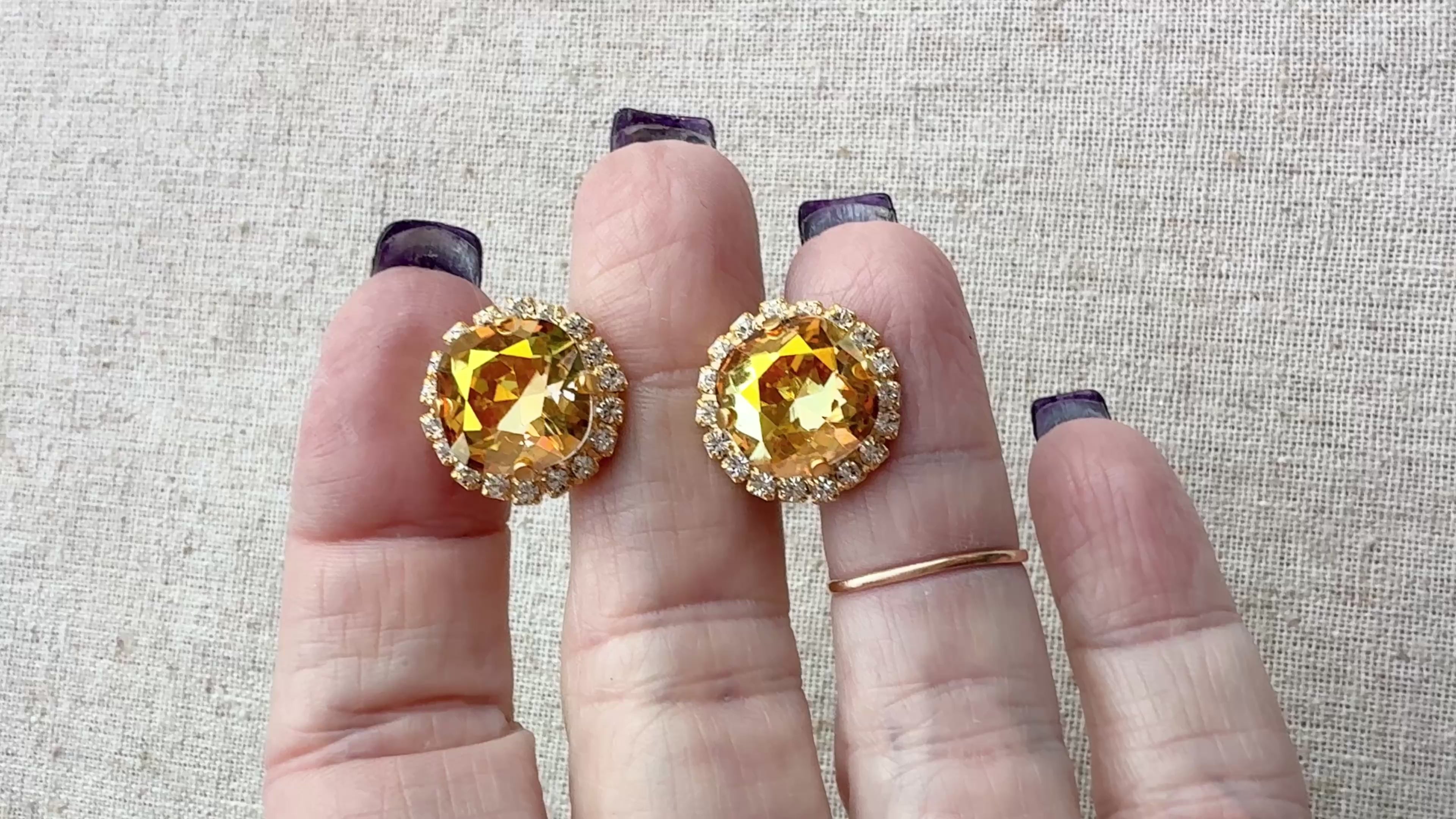 Surgical stainless steel post. Lead and nickel free. High quality crystals, and plated brass. Constructed with love and a focus on quality. If you don’t absolutely love it, return it.