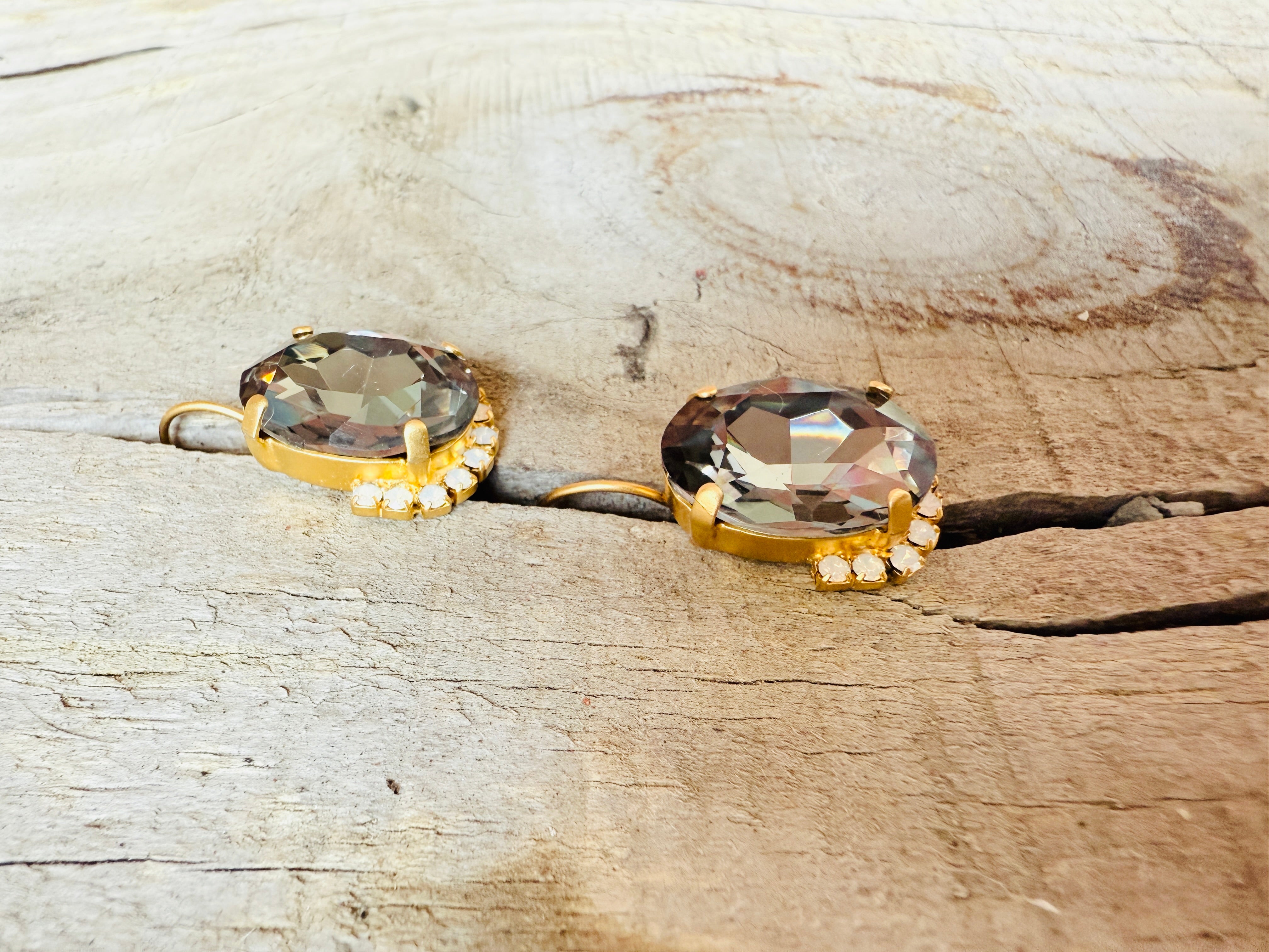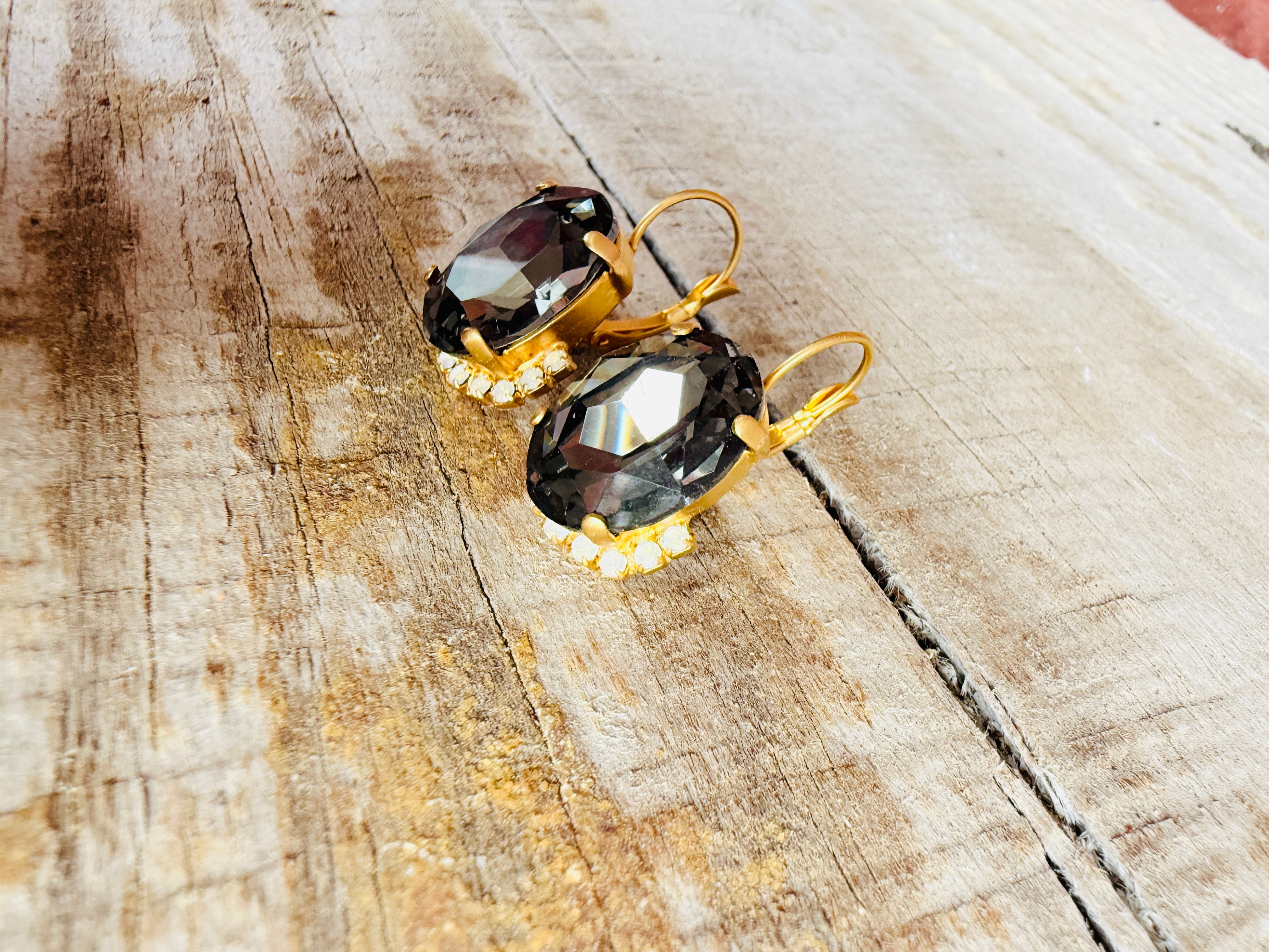 Patsy Graphite Crystal Earrings - the perfect blend of matte gold and lightweight sparkle, made with Australian crystals and featuring a convenient and comfortable lever back closure. Plus, they won't irritate your skin since they're lead and nickel free!