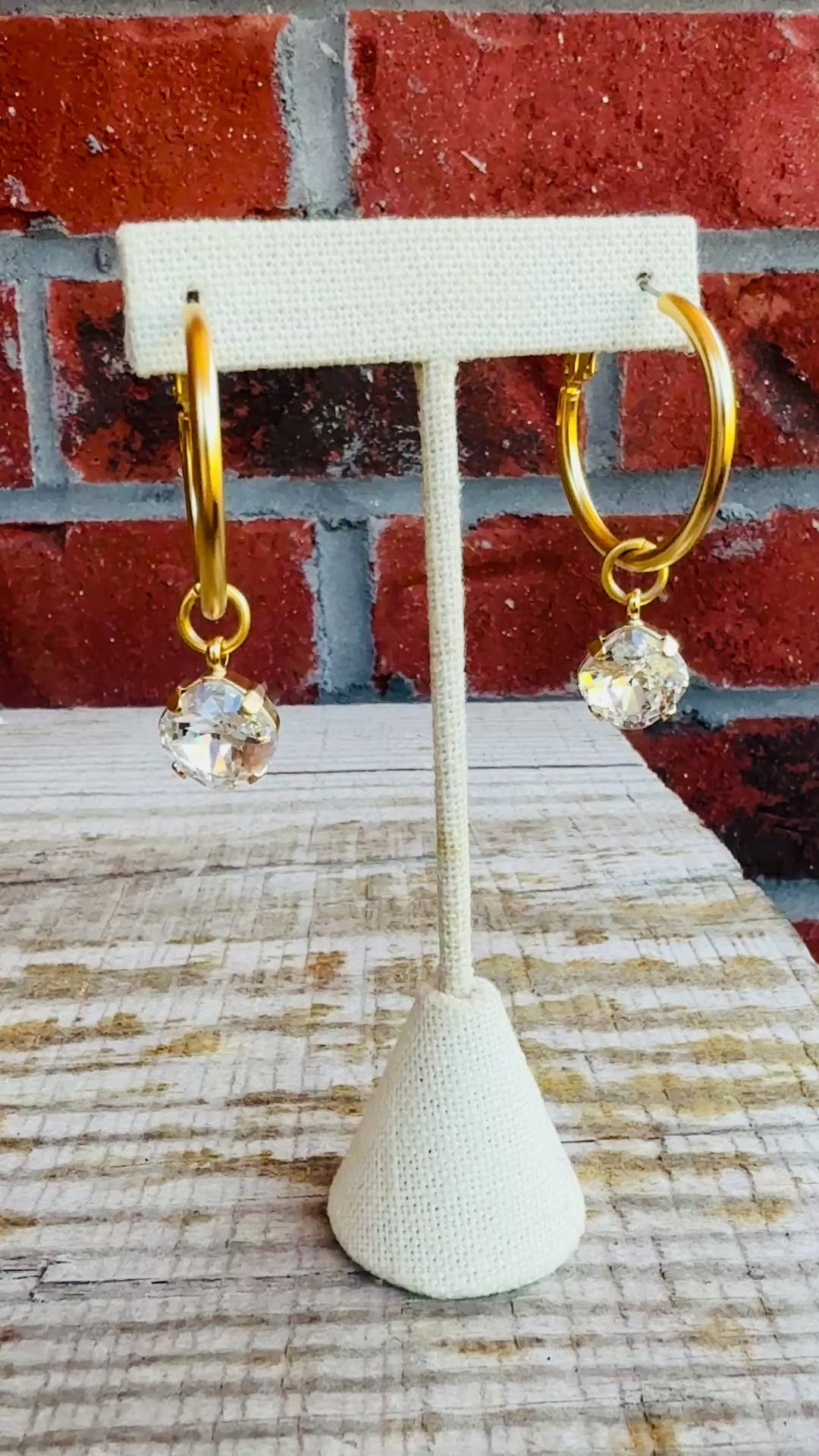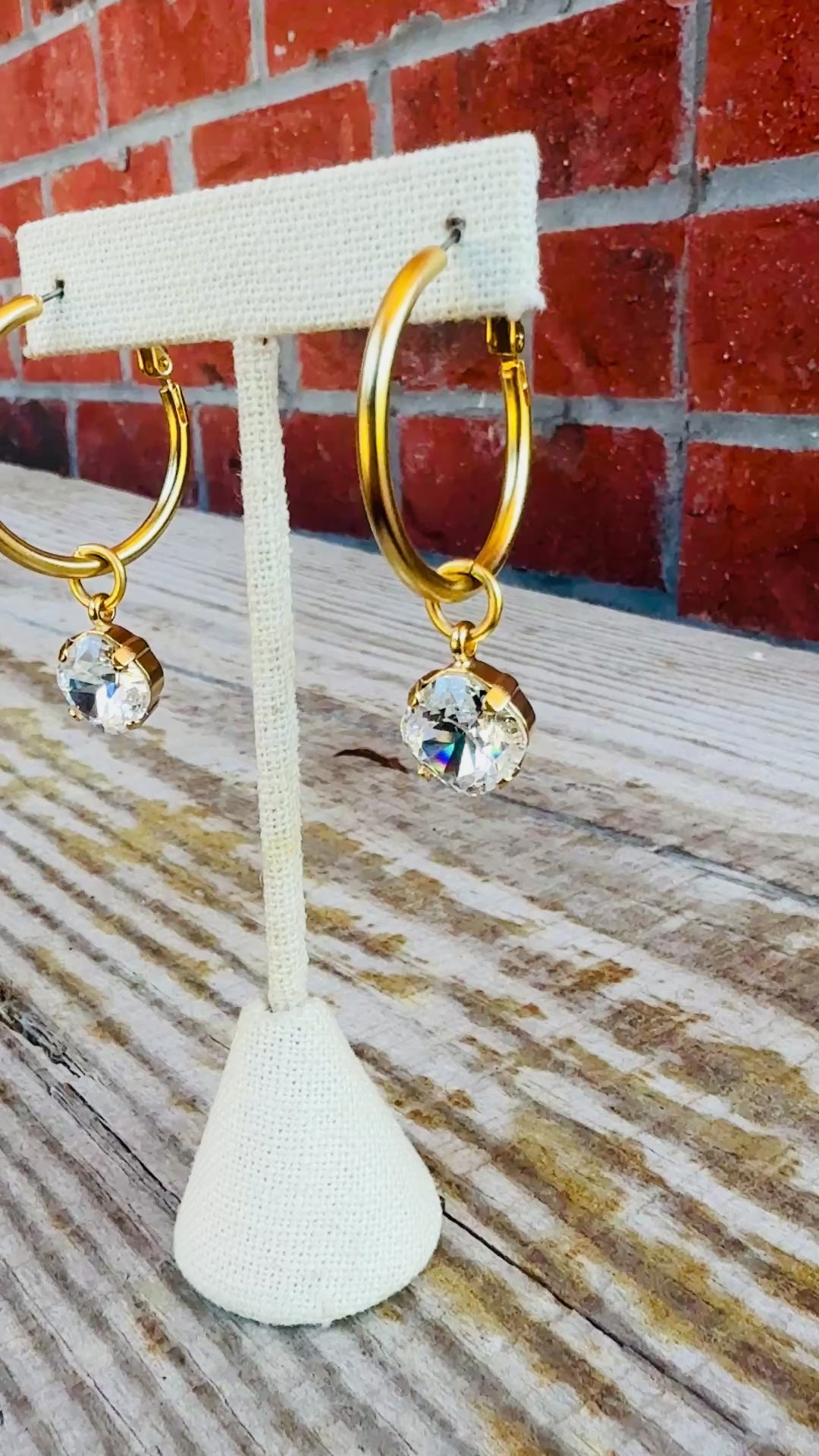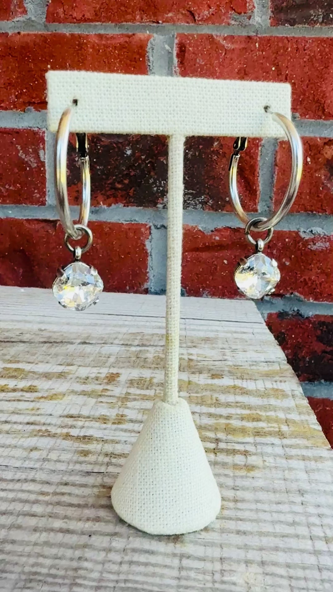 Tessa is a BESTseller! She is perfect for everyday wear and a little bit of bling. The hoop style is available in antique silver or matte gold. The crystal dangle is a 12mm soft square cut crystal that catches the light to shimmer with every little movement. The crystal dangle can also be removed for a totally different look. Leverback closure ensures easy on and off as well as comfortable all day wear.