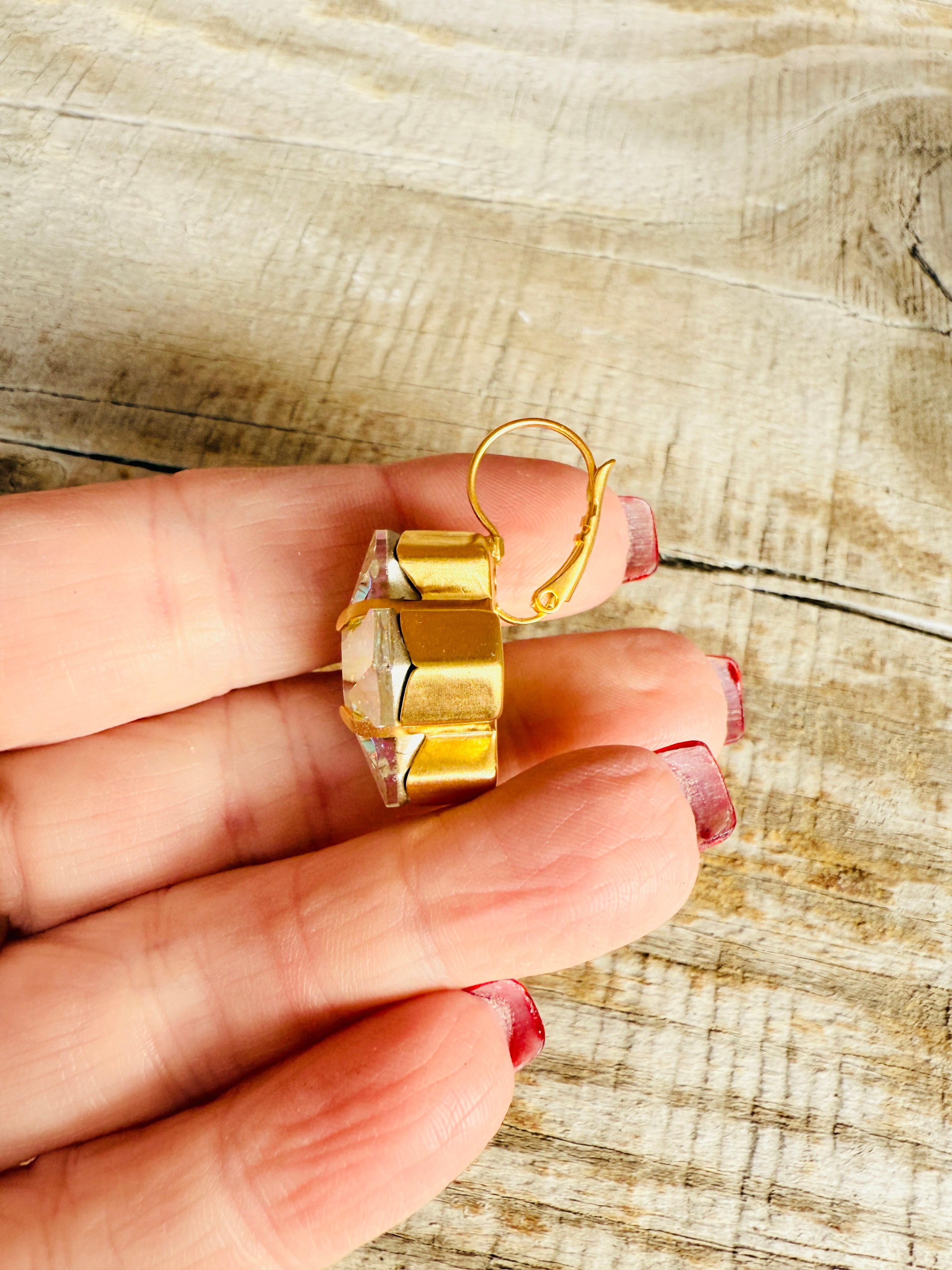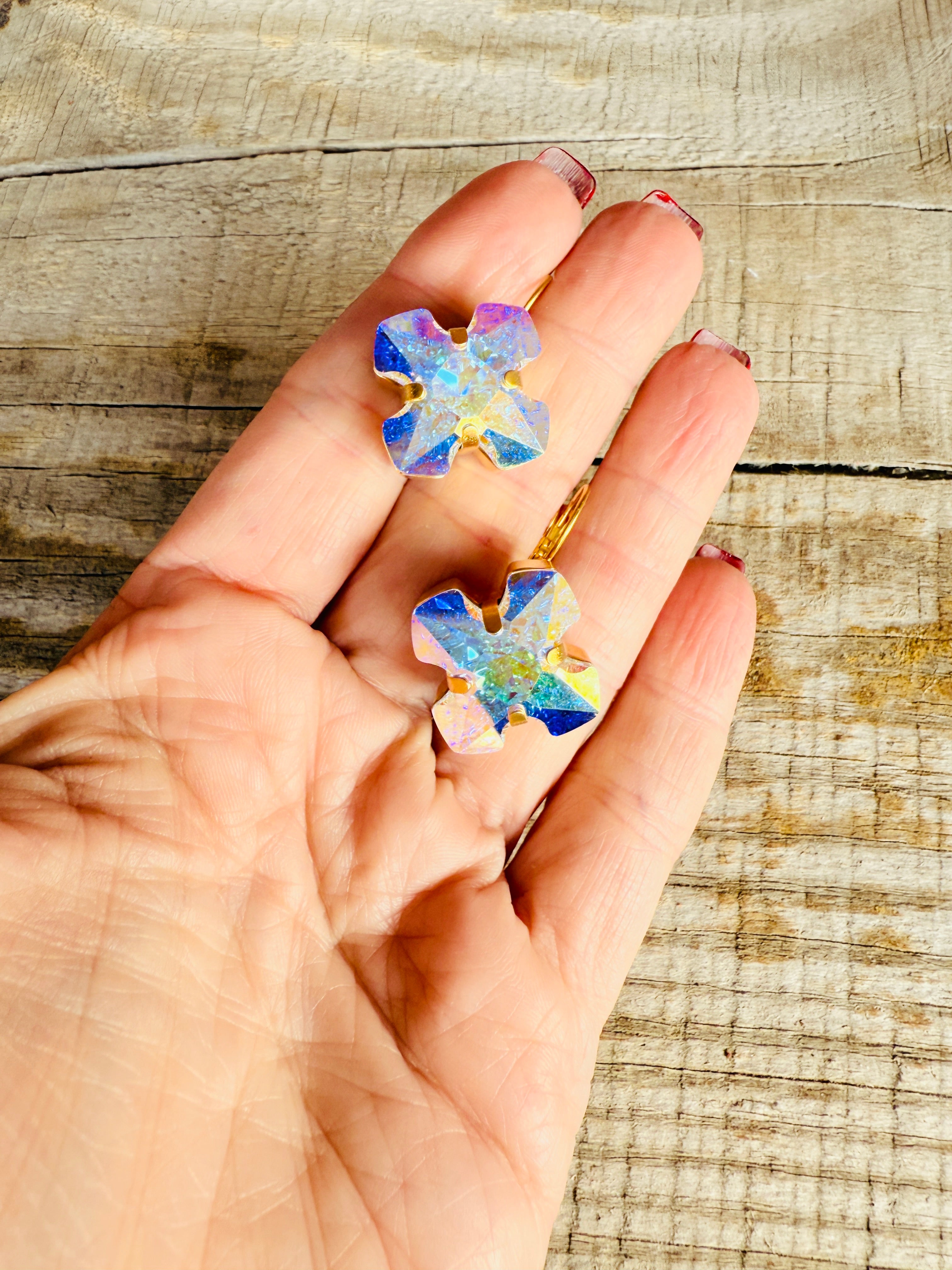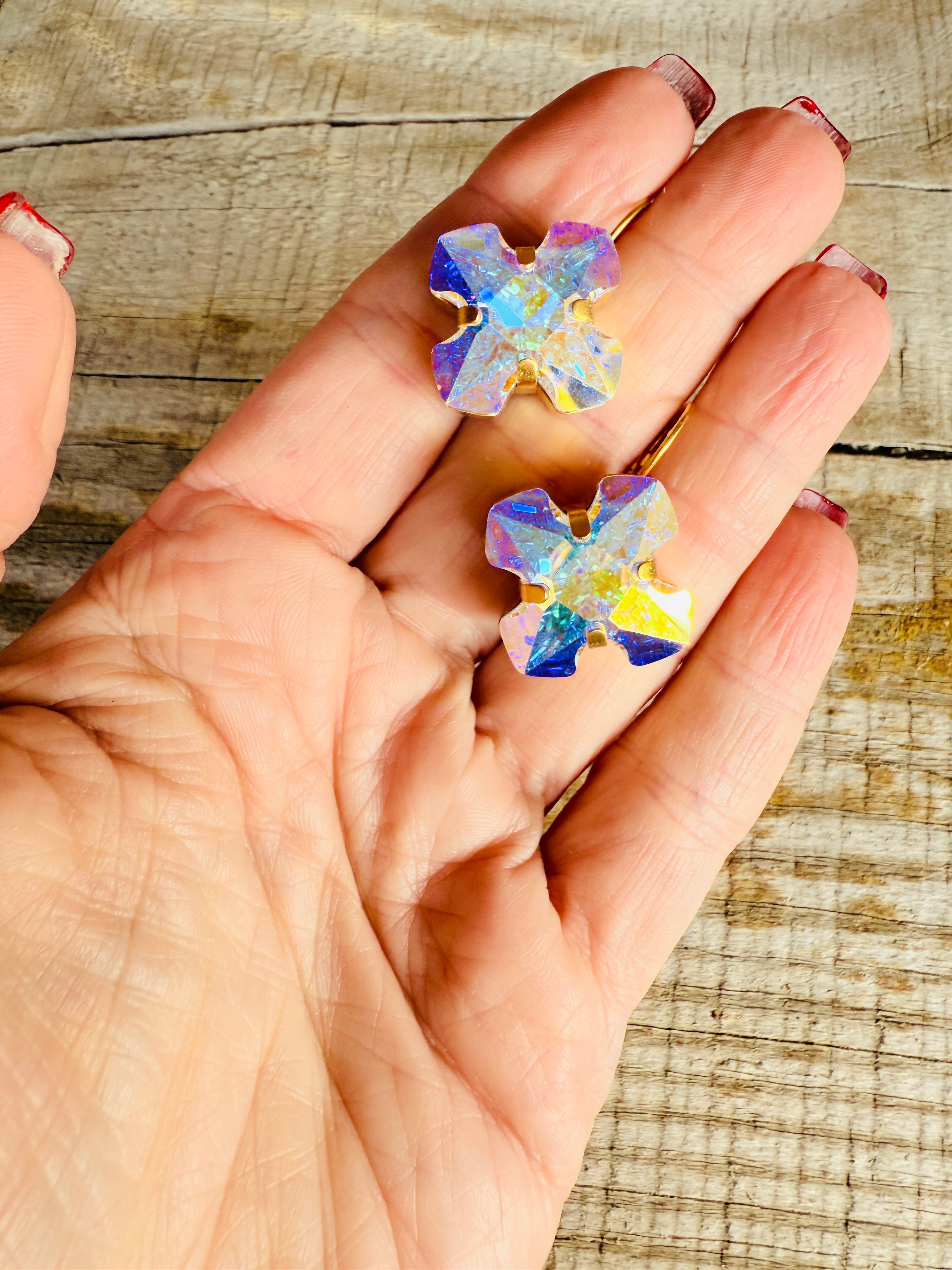 Crafted with precision, the Claire Greek Cross Crystal Earrings exude sophistication. Choose between two crystal colors (Crystal AB, or Amber Gold) a stunning combination of dazzling crystals and a lustrous gold finish, these earrings are a true reflection of luxury. Leverback closure for easy on/off and comfortable all day wear.