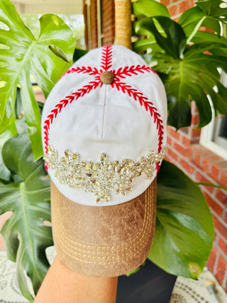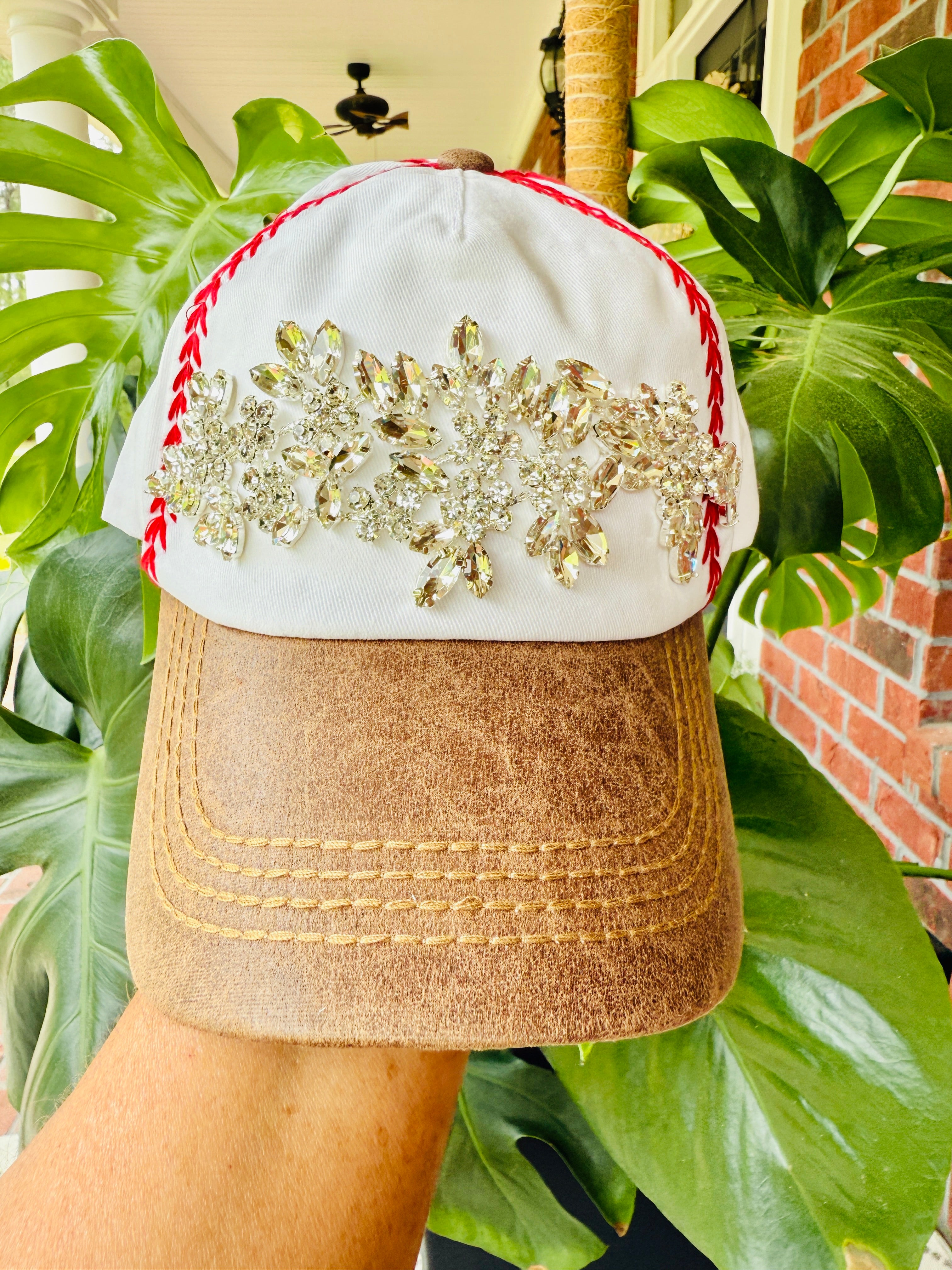 Get ready for your grand slam in this stylish bling baseball themed hat!