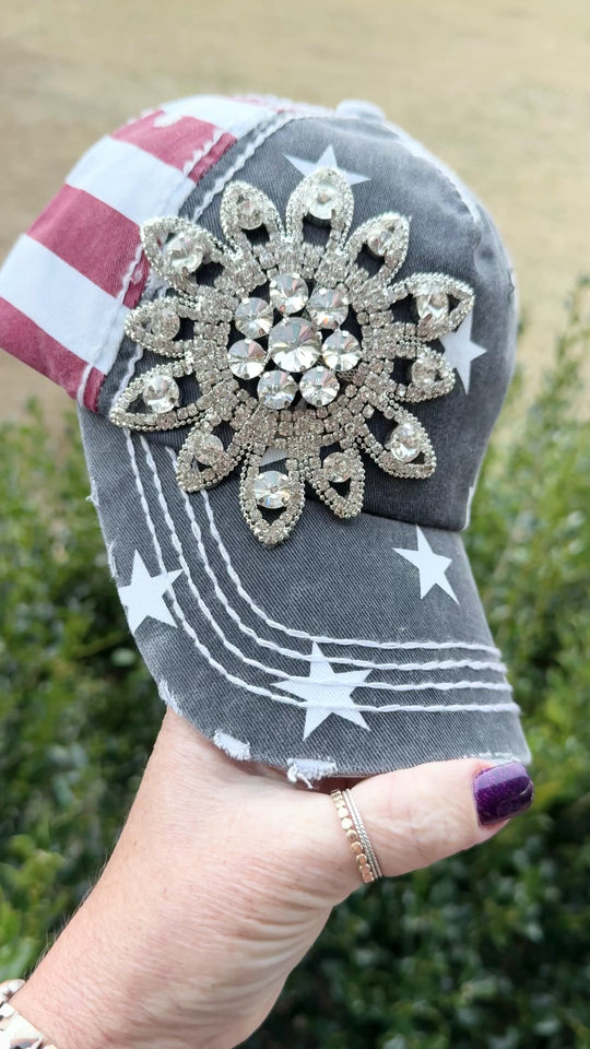 Madison Patriotic Crystal Embellished Fashion Baseball Hat