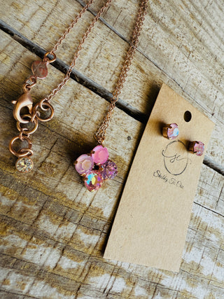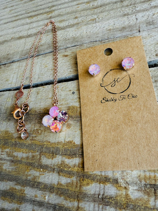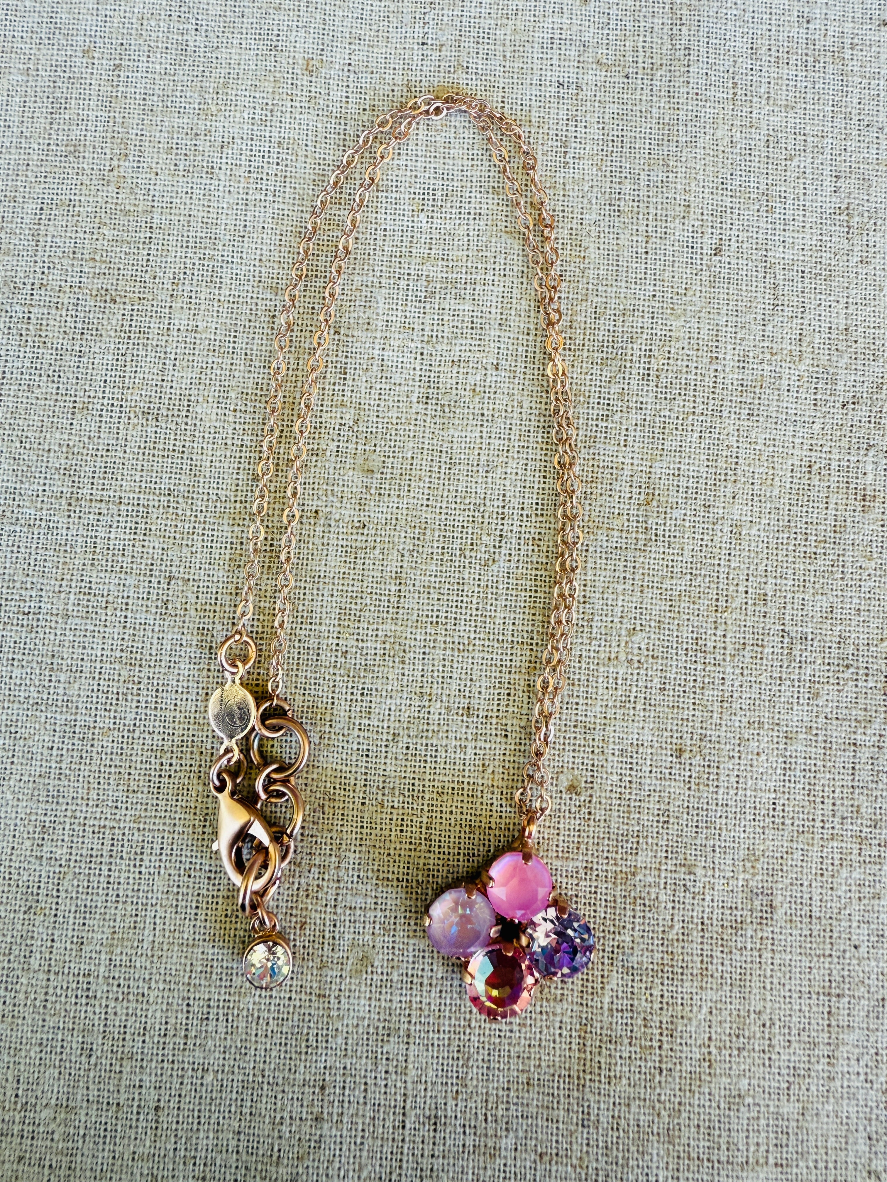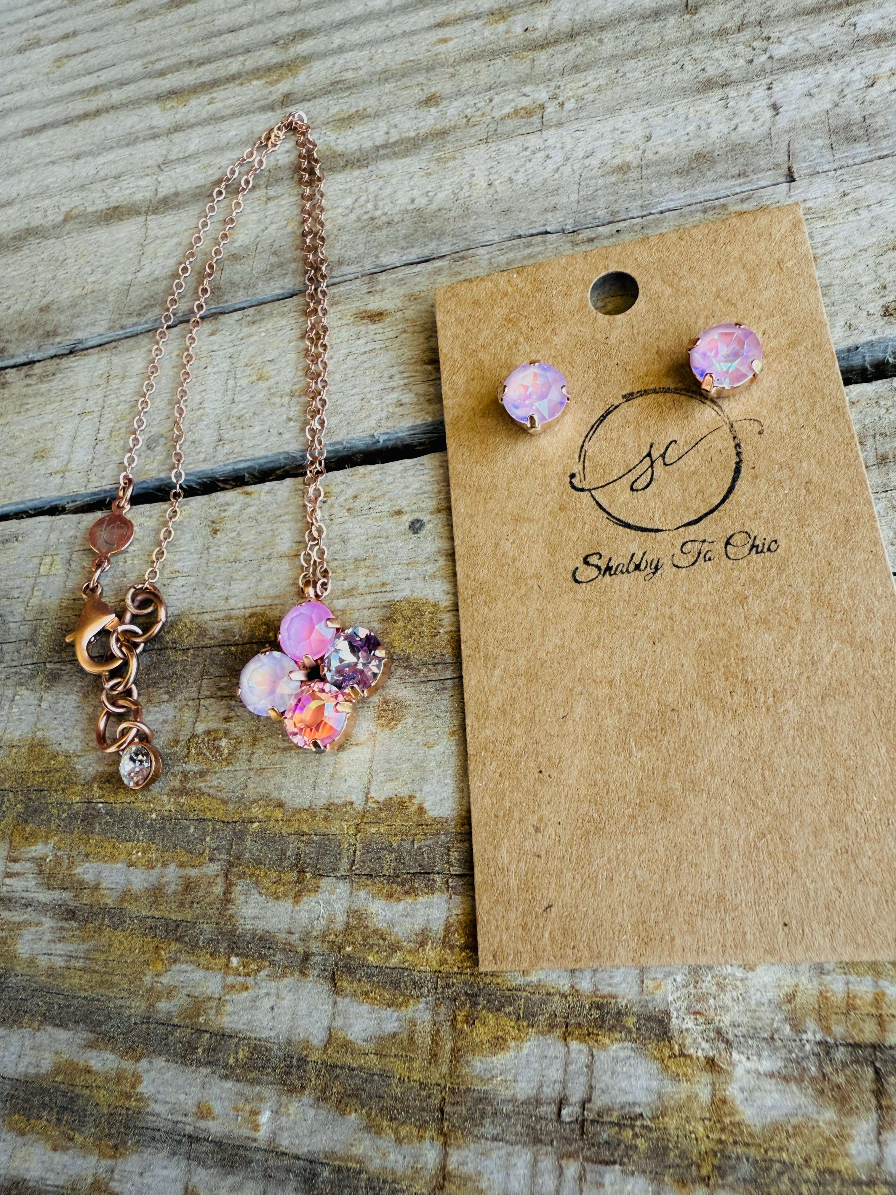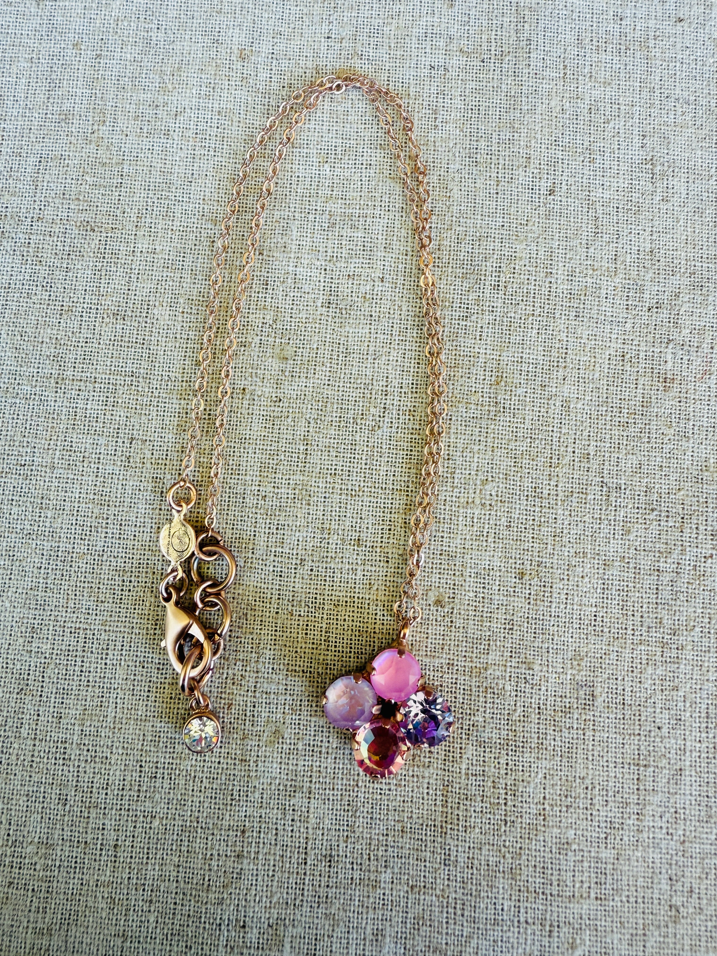 Soft pinks and Lilacs pair beautifully together in this quad style pendant. Packing a sparkle punch but neutral enough to wear with all your favorite outfits.