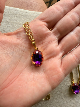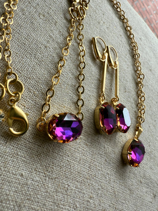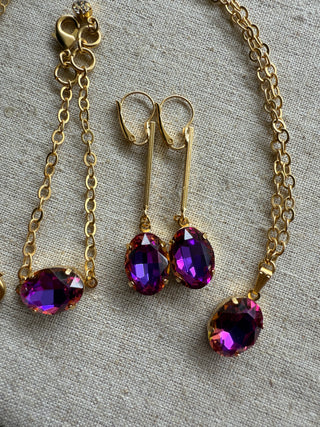 This exquisite jewelry set features a stunning deep violet hue that commands attention. Paired with elegant satin gold, it promises to make you stand out effortlessly wherever you go.