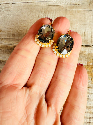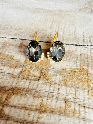 Patsy Graphite Crystal Earrings - the perfect blend of matte gold and lightweight sparkle, made with Australian crystals and featuring a convenient and comfortable lever back closure. Plus, they won't irritate your skin since they're lead and nickel free!