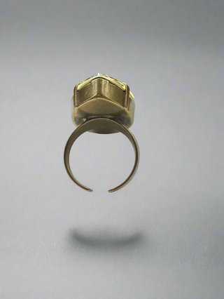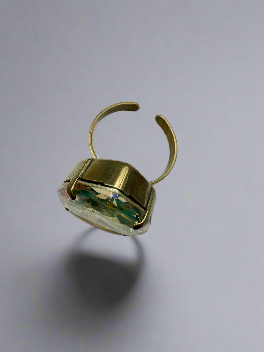 Let the vibrant colors of this Australian pear-shaped crystal light up your look. With hues of yellow, greens, and golds, this adjustable sizing cocktail ring is a showstopper for any occasion! Antique gold finish