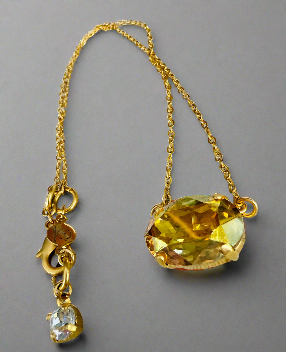 Experience the luxurious beauty of our Sunny Oval Crystal Pendant Necklace. Featuring a stunning 18mm crystal set in a gorgeous gold finish and paired with a delicate chain, this piece radiates warmth and elegance. With an adjustable length between 16" and 18", it's the perfect accessory for any occasion.